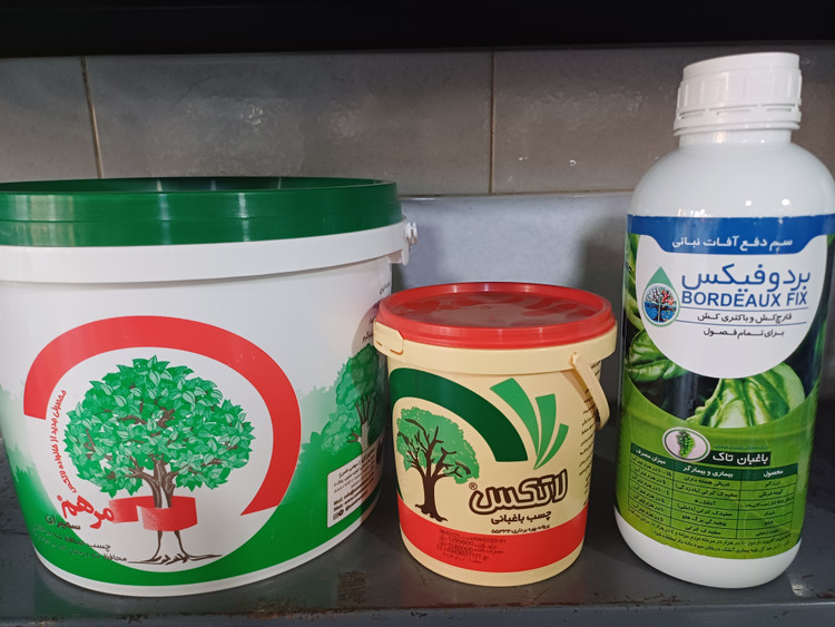 پکیج محافظ درختان (محافظ تنه ۵ کیلویی ، بردو فیکس ۱ لیتری و چسب هرس ۱ کیلویی)